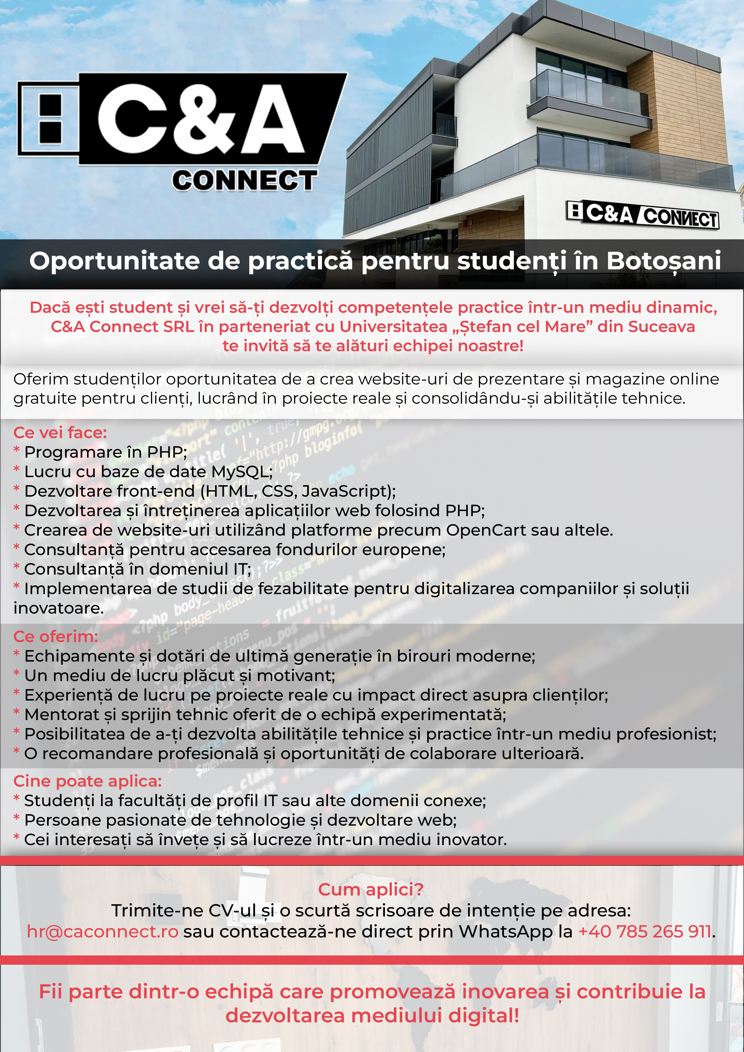 Colaborare între C&A CONNECT și Universitatea „Ștefan cel Mare” din Suceava